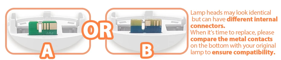 When replacing, please match the metal contacts on the bottom (the PCB contact pads) to your original lamp to ensure compatibility.